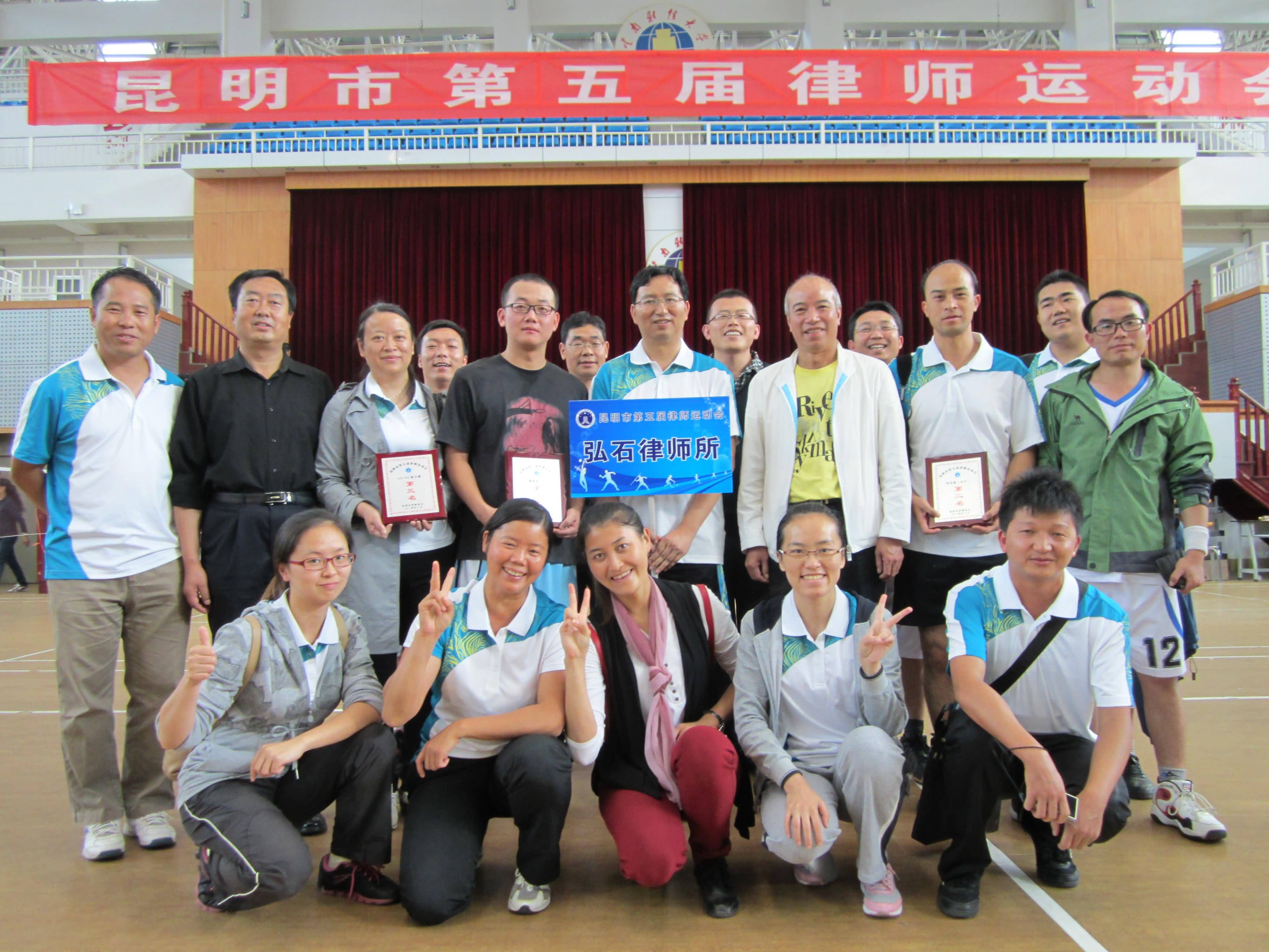 来自昆明地区各个律师事务所的六百余名运动员参加了本届运动会的各项团体或个人比赛。我所三十余名的律师、律师助理、行政人员积极参与各项比赛。经过激烈竞争、顽强拼搏,我所获得了男子三人制篮球赛的冠军、4×100接力赛的季军,并且在其他各项个人比赛中频传佳绩,其中苏雯律师取得了女子羽毛球单打的亚军。