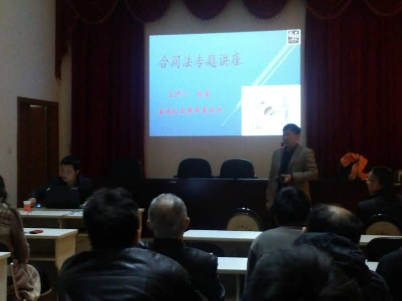 为积极响应党的“十八届四中全会” 关于全面推进依法治国的号召,将依法治国贯彻落实到“依法治区”、“依法治队”中,2015年12月4日,我所应云南省有色地质局306队的邀请,开展“合同法专题讲座”。有色地质局306队相关领导以及部分职工共100多人参加了讲座。
