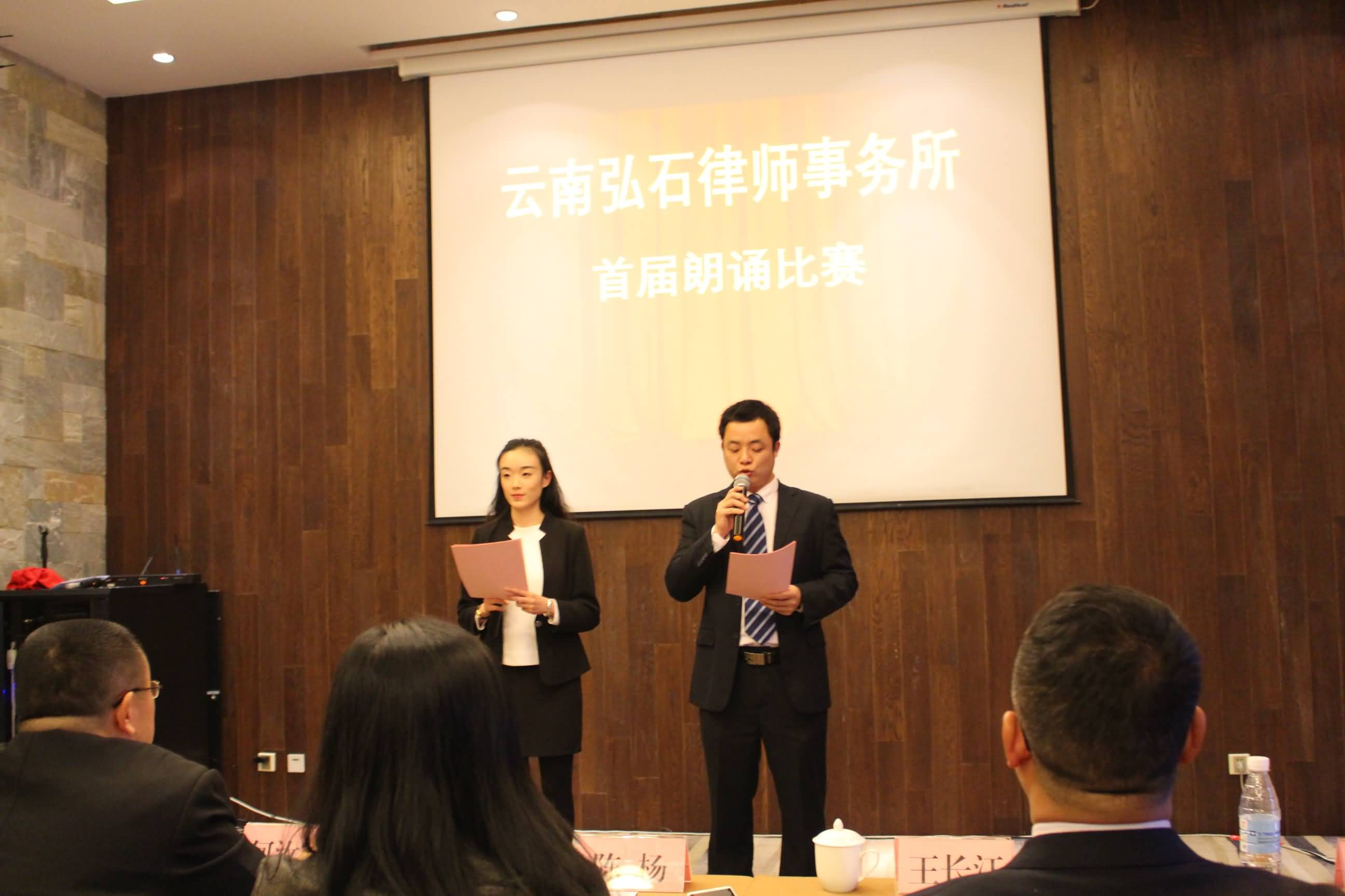 会议的第二阶段,为进一步加深成员间的了解,2016年新加入我所的9名新人分别上台进行了自我介绍。会议的第三阶段,也是我所全新开展的一项活动——“云南弘石律师事务所首届朗诵比赛”,本次比赛共计二十余人报名参与,选手们的精彩表现赢得阵阵掌声,为我们呈现了一场令人回味无穷的视听盛宴。