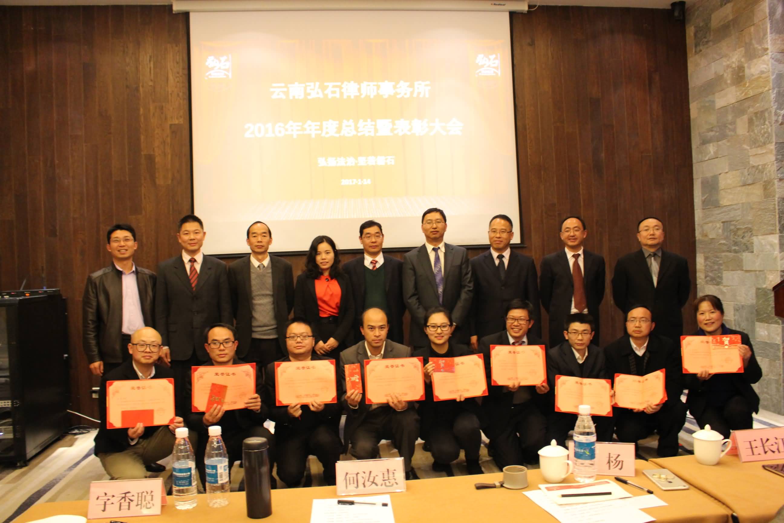 2017年1月14日——2017年1月15日,我所共五十余人在中信嘉丽泽温德姆酒店举行了“云南弘石律师事务所2016年年度总结暨表彰大会。”