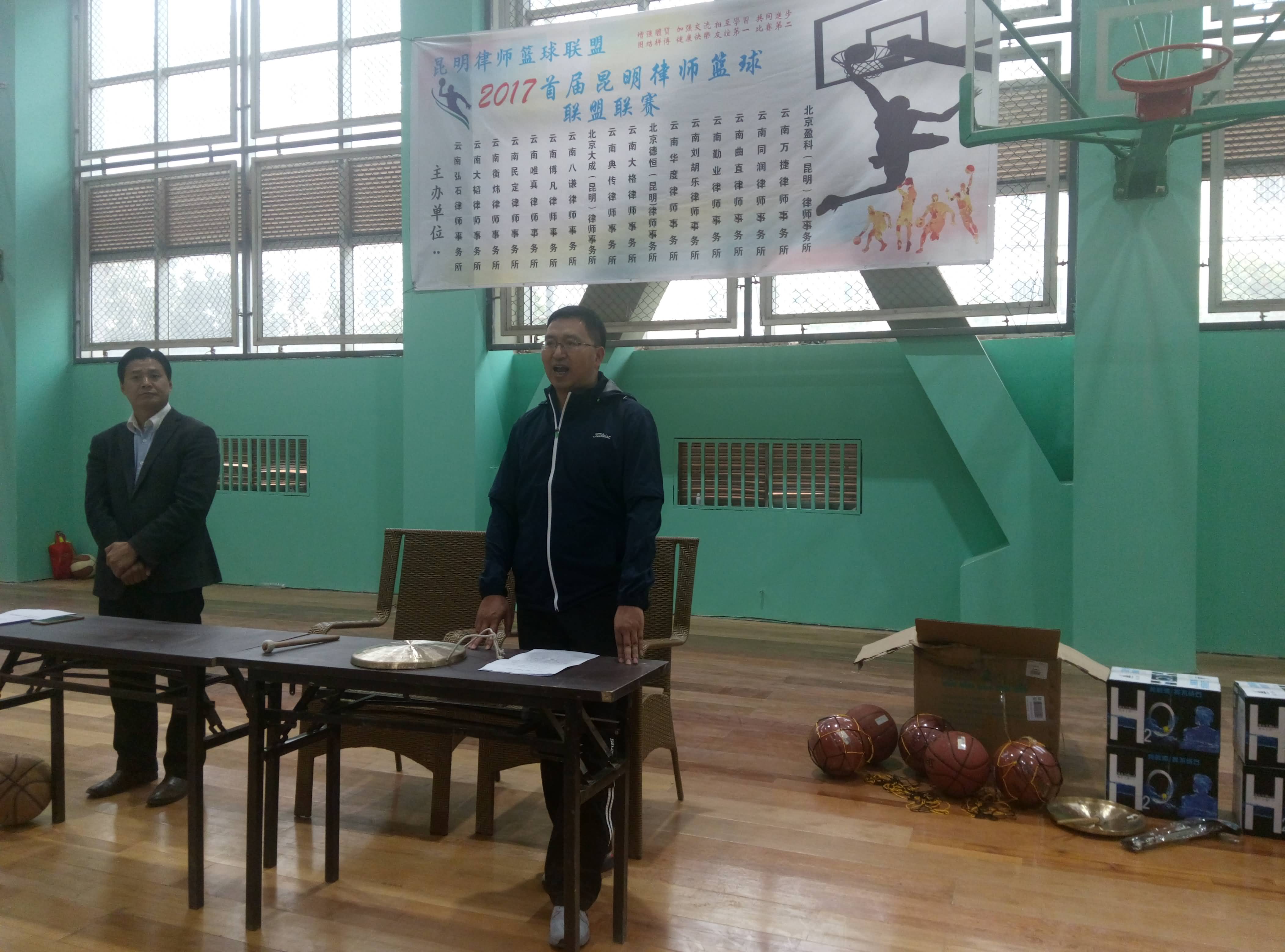 开幕仪式上,我所濮鹤周主任作为昆明律师篮球联盟的主任进行了精彩的致辞,濮鹤周主任的致辞主要从篮球联盟“友谊第一,比赛第二”及“自愿参加”的原则出发,倡导参赛人员安全、文明、有序进行比赛,并对本次篮球联盟赛的顺利开展致以衷心的祝福。
