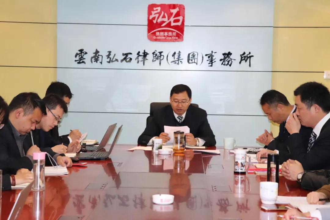 2018年3月3日,上午9时30分,云南弘石律师事务所全所规范管理专题会议在所内会议室召开。我所全体合伙人、律师及行政工作人员到场参加会议。