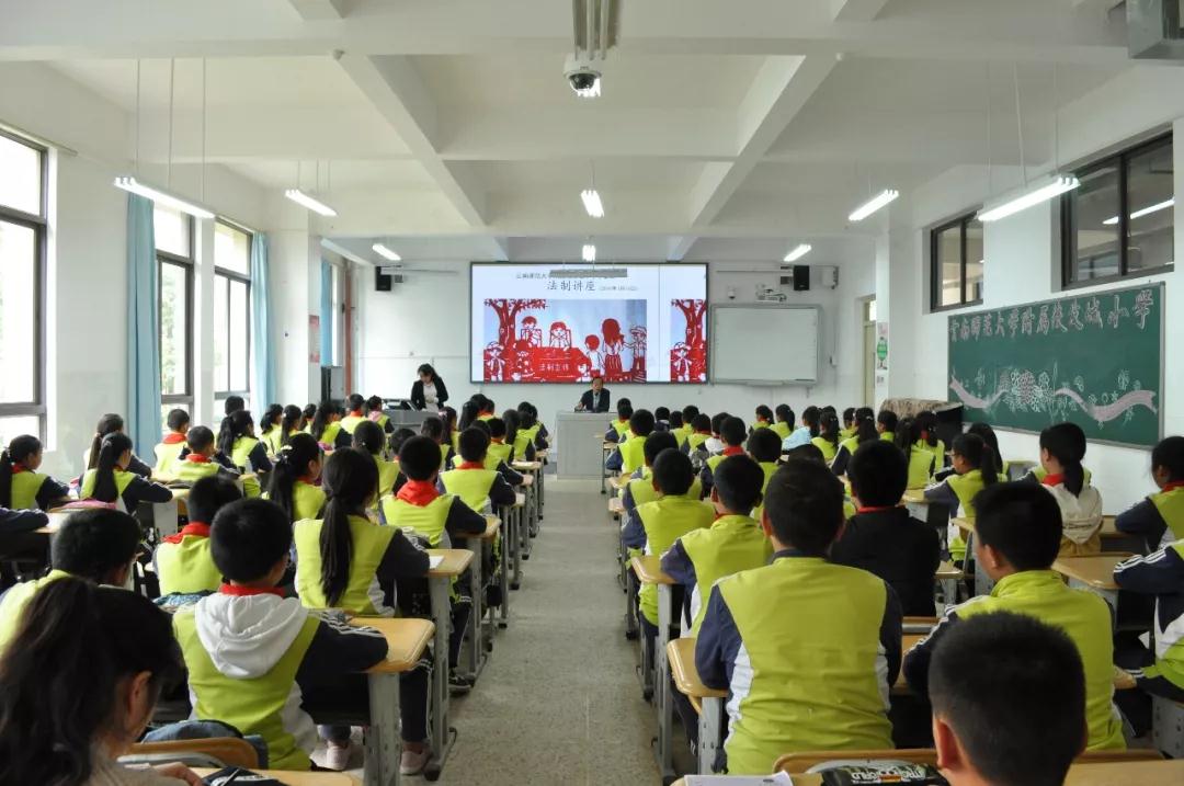 为加强本校全体毕业生的法制意识,顺利做好小学与初中的升学衔接和过渡,2018年4月18日下午,云南师范大学附属俊发城小学邀请学校的常年法律顾问杨阳律师,在学校多媒体大教室举办了一场生动、活泼的法制讲座,全校毕业生及校长、毕业班老师共计100余人参与了讲座。