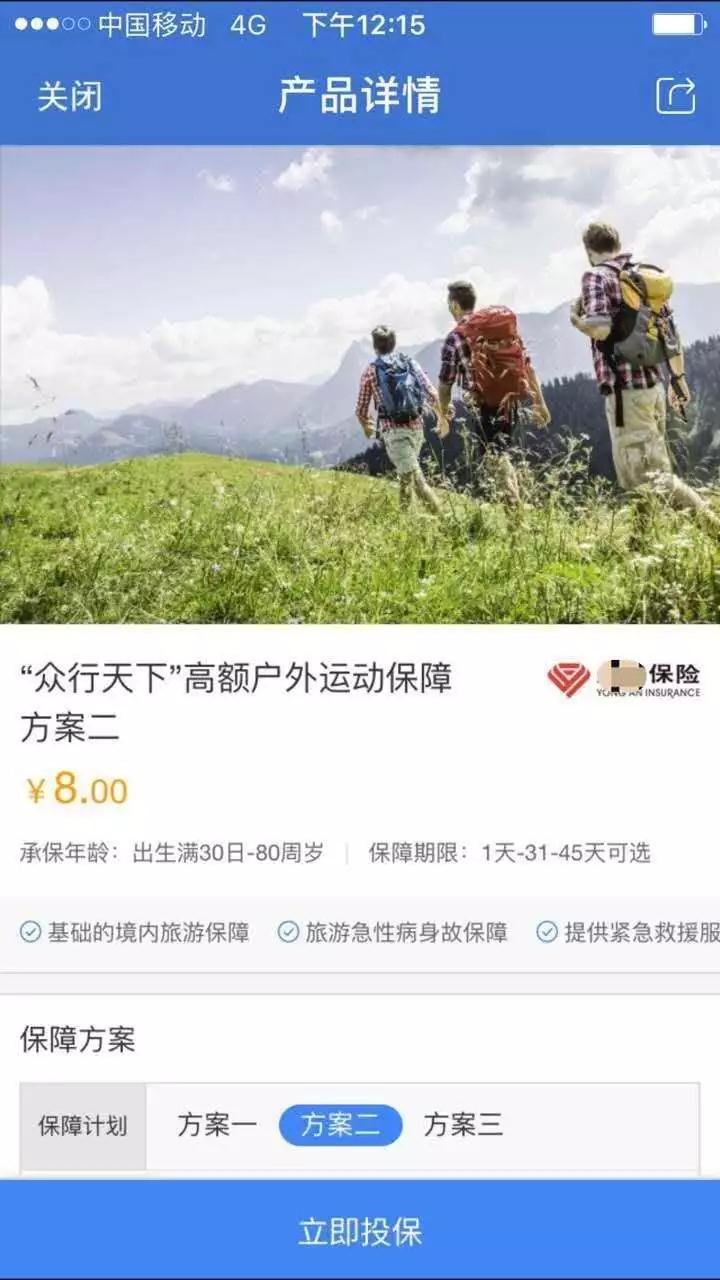 “众行天下”高额户外运动保障