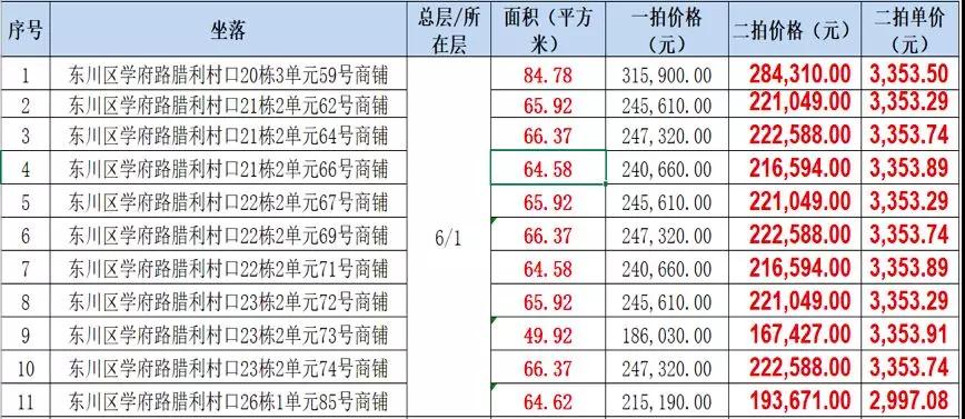 本次拍卖的11间商铺为我所律师代理的申请强制执行案件执行标的物。所有拍卖信息以昆明市东川区人民法院(2018)云0113执946号等拍卖公告为准。