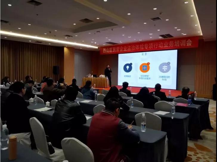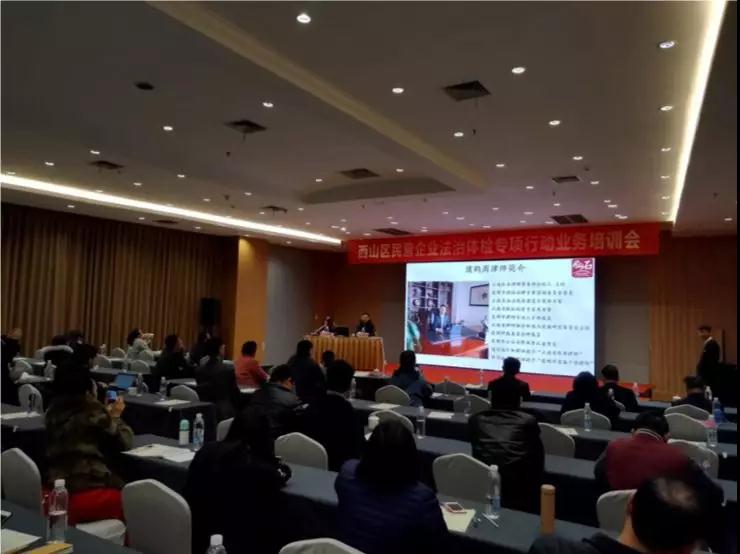 为认真贯彻落实习近平总书记在民营企业座谈会上的重要讲话和关于民营企业发展的重要指示批示精神以及省委省政府的决策部署,根据司法部《关于开展民营企业法治体检专项活动的实施方案》、省政府《关于进一步改善民营经济发展法治环境10条措施》、省司法厅、省工商联和省律协印发的《民营企业法治体检专项行动实施方案》及市司法局、市工商联、市律协印发的《昆明市民营企业法治体检专项行动实施方案》的要求,昆明市西山区司法局和工商联合会决定举办西山区民营企业学习贯彻习近平总书记重要讲话精神政策宣讲暨法治体检专项行动业务培训。