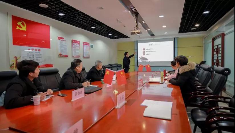在参观完成之后,检查组一行就党建工作与濮鹤周主任及本所党员进行了座谈,在座谈会上,王武副书记通过PPT的形式,从党组织基本情况、规范化建设标准汇报、成果展示三个方面向检查组介绍了我所党建的规范化达标建设情况。