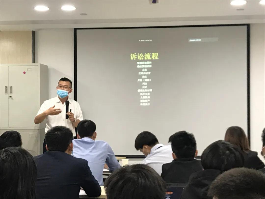 刘文峰律师以《民事诉讼法》为主线,结合诉讼实践。通过案例、现场情景再现等方式深入浅出的向参会人员介绍了整个民事诉讼的一审、二审、执行流程。整个培训气氛活跃,现场不断爆发热烈的掌声。2个小时培训结束后,听者意犹未尽。