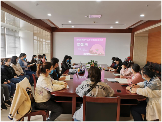 为响应“昆明市2020年法治宣传进企业活动”的号召,2020年4月10日下午,我所申秋敏律师受邀到顾问单位云南地矿建设工程有限责任公司开展“昆明市2020年法治宣传进企业”婚姻法专题讲座,公司全体女职工参加了本次讲座。