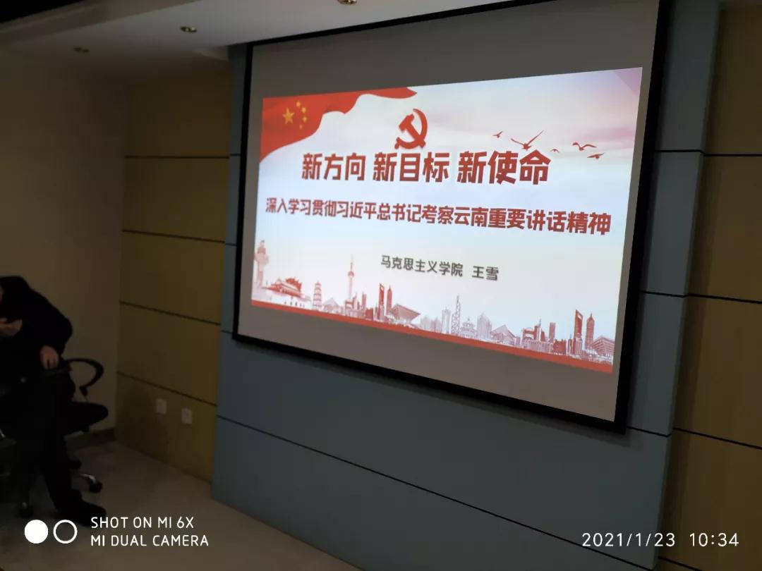 主题党日的第三个议程,由王雪副院长进行“新方向、新目标、新使命”深入贯彻学习习近平总书记考察云南重要讲话精神的专题讲座。