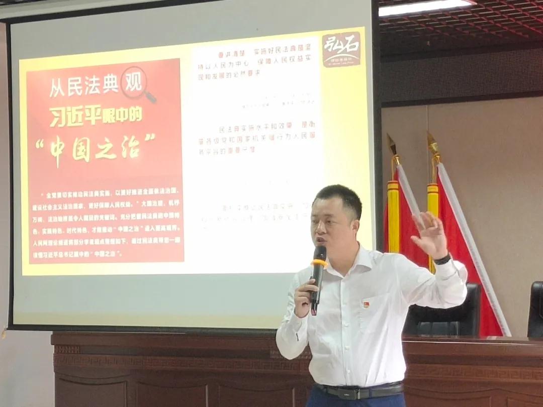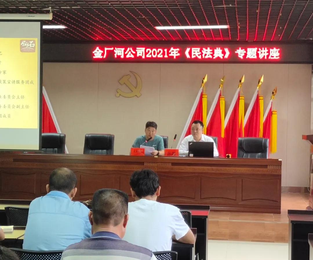 为贯彻落实党中央关于加强学习、宣传《民法典》的工作部署,根据云南省司法厅关于《全省律师行业开展“我为群众办实事”活动方案》的部署及昆明市司法局相关工作安排,2021年6月10日上午8时30分,我所党支部书记张磊律师应保山金厂河矿业有限公司的邀请为公司职工开展《民法典》专题讲座,公司领导、职工近百人到场参与本次《民法典》学习活动。