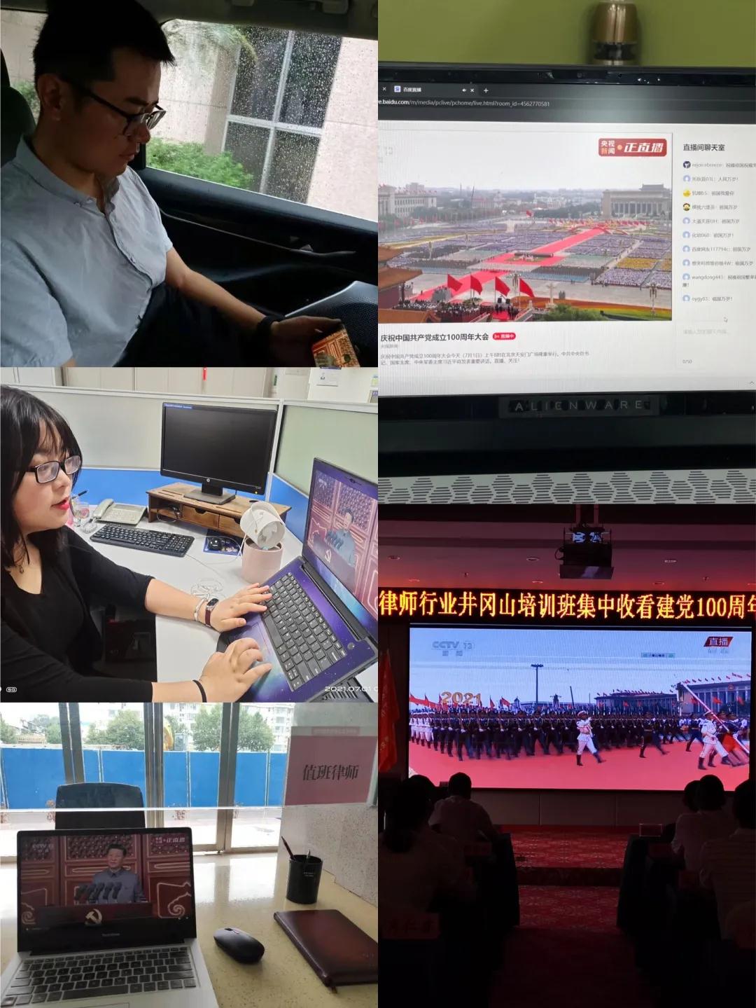 深入贯彻落实习近平新时代中国特色社会主义思想,激励和动员广大律师队伍,更加紧密地团结在以习近平同志为核心的党中央周围,进一步发挥律师在社会主义法治建设的作用,2021年7月1日上午8点整,我所组织安排成员在律所大会议室观看了“庆祝中国共产党成立100周年大会”直播。我所未出差的合伙人、律师、行政人员均参与了直播观看,部分出差人员还在途中、其他工作地点观看了直播。