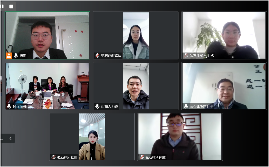 In order to create a new situation of cooperation and promote the rapid and high-quality development of foreign-related legal business, Yunnan G-stone Law Firm and Shanghai Trans Bright Law Firm held an online strategic cooperation conference on January 5, 2023. Members attending the conference include: